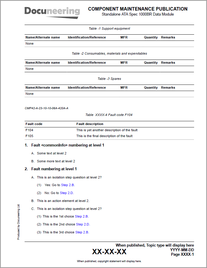It is important to understand that when Printing an ATA Spec 1000BR Data Module, there will be differences between the Printed and Published outputs...
